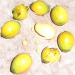 Veja como são carnudo os frutos e os espinhos é esses palitos escuro que estão sobre os frutos, estes pedacinhos menores é os que você vai usar para pescar, é só colocar no anzol e jogar na água e esperar o peixe vim comer.